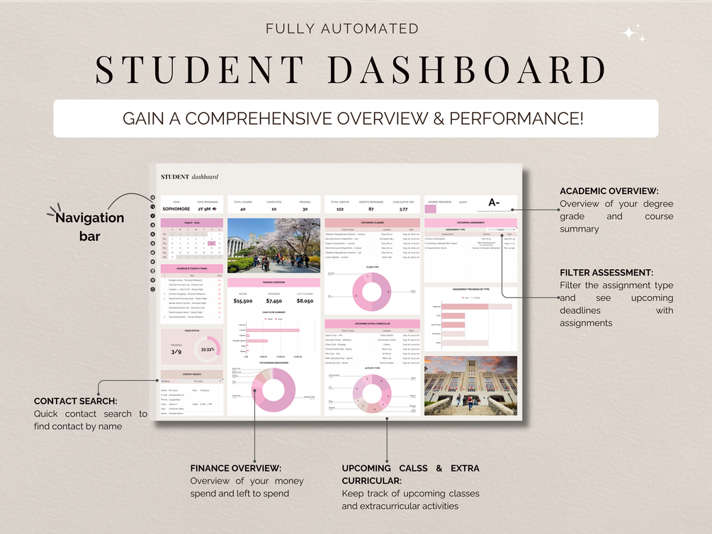University & College Student Planner Google Sheets Course, GPA, Assignments, Calendar Budget Tracker Academic Dashboard spreadsheet template